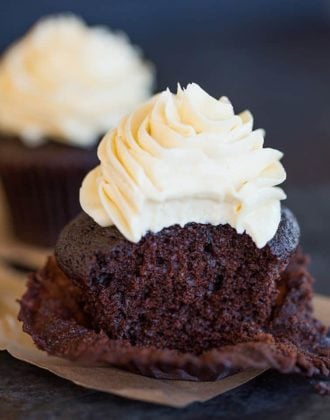 The best (and super easy!) chocolate cupcakes made from scratch topped with my favorite vanilla buttercream frosting recipe. A perfect combination!