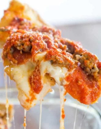 This deep dish biscuit pizza has all of the great flavor of a traditional deep dish pizza made easier with a homemade biscuit dough crust! Pizza is one of my top fourย all-time comfort foods...