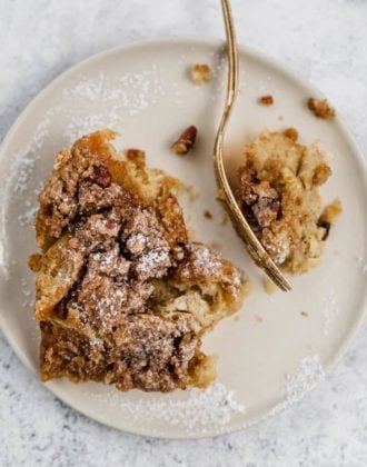 Mmm more eggnog deliciousness coming out of the kitchen! I am enamored with the flavor of eggnog being infused into baked goods – all that great flavor, without actually drinking it (it just seems...