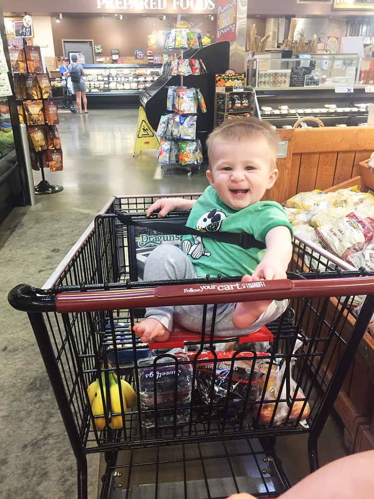 Dominic continues to be totally gregarious, always smiling and squealing and happy. At the grocery store this week, he went into total lounge mode, and then waved to everyone that smiled and said hello to him 😂