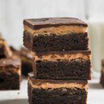 Freezing Instructions: These brownies freeze incredibly well. Once the ganache topping is completely set and cooled, slice them into squares and wrap them individually in plastic wrap, then place in a freezer-safe ziploc bag and store in the freezer for up to 3 months. Thaw in the refrigerator overnight or on the counter for about 1 hour.