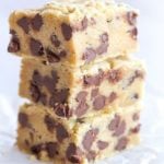 Chocolate chip cookie bars are the perfect easy treat when you're craving your favorite chocolate chip cookies but don't want to wait for dough to chill or to scoop out cookies!