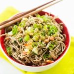 Add the cooked and cooled soba noodles to the bowl and toss to evenly coat with the dressing. Add the cucumber, red pepper, carrots, and the white parts of the green onions, and toss to combine. Refrigerate for at least 1 hour before serving.