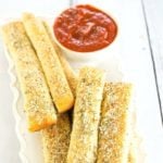 For the Breadstick Seasoning: While the breadsticks are in the oven, prepare the breadstick seasoning. In a small bowl, stir together the Parmesan cheese, onion powder, oregano, garlic powder, basil and salt.