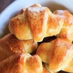 Turn the dough out onto a lightly floured surface and roll into a 12-inch circle. Spread the softened butter over the dough, sprinkle with the salt, and cut into 12 wedges using a pizza cutter. Roll each wedge starting at the wide end, and arrange (with pointed tip of dough underneath each roll) on a baking sheet lined with parchment paper. Cover loosely with plastic wrap and return to a warm, draft-free spot until doubled in size, about 1 hour. Make-Ahead Note: At this point, the rolls can be refrigerated for up to 24 hours before baking.
