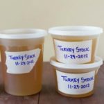 5. The next day, remove the layer of fat that has collected on the top of the stock, then portion out the stock into quart-size containers or freezer-safe ziploc bags and store. The stock can be refrigerated for up to 3 days, or frozen for up 6 months.