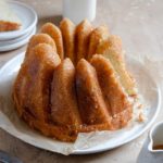 Using a skewer, poke holes all over the top of the cake. Very slowly pour the glaze all over the cake, allowing time for it to soak in before pouring more. Allow the cake to cool completely in the pan, then invert onto a serving plate.