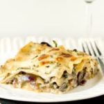 Cover the dish tightly with aluminum foil that has been sprayed with non-stick cooking spray and bake until the edges are just bubbling, about 20 minutes, rotating the dish halfway through baking. While the lasagna is baking, combine the remaining 1 clove minced garlic, remaining 2 tablespoons basil, and remaining 2 tablespoons parsley in a small bowl.