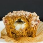Sprinkle the pecan streusel on top of each muffin. Press on the streusel lightly to make sure it adheres to the batter.