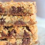 Adjust an oven rack to the lower-middle position and preheat to 350 degrees F. Spray a 9x13-inch baking pan with non-stick spray. Line the pan with two overlapping pieces of foil or parchment paper, leaving the overhang to act as handles for lifting the bars out of the pan. Spray with non-stick spray.