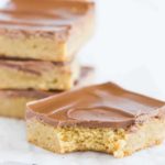 Bake until the top is shiny and light golden brown, 22 to 25 minutes; do not overbake. Immediately after removing from the oven, sprinkle with broken up Symphony bars all over the surface and let sit for 1 minute. Using an offset spatula, begin to spread the chocolate; it will continue to melt as you spread it around. Once all of the chocolate has melted, smooth into an even layer.