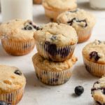These easy blueberry muffins mix together quickly for a perfect morning treat. Soft and tender from sour cream and bursting with blueberries (use fresh or frozen!), these muffins have been a long-time family favorite.